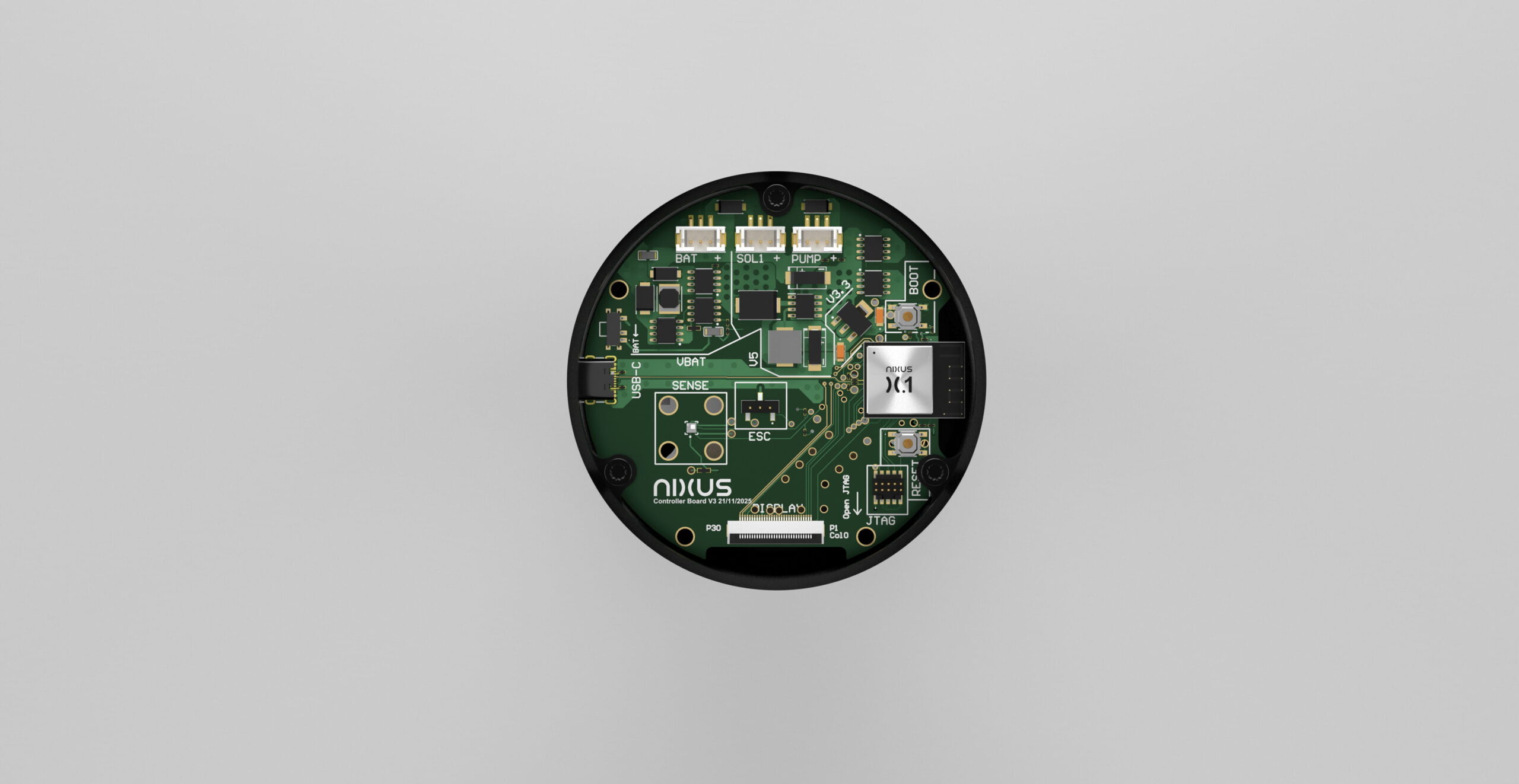 NIXUS has two parts: a charger module and a ball canister. The charger module contains the electronics that power the AI charging control.